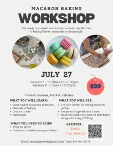 - 2-hour hands-on baking macaron